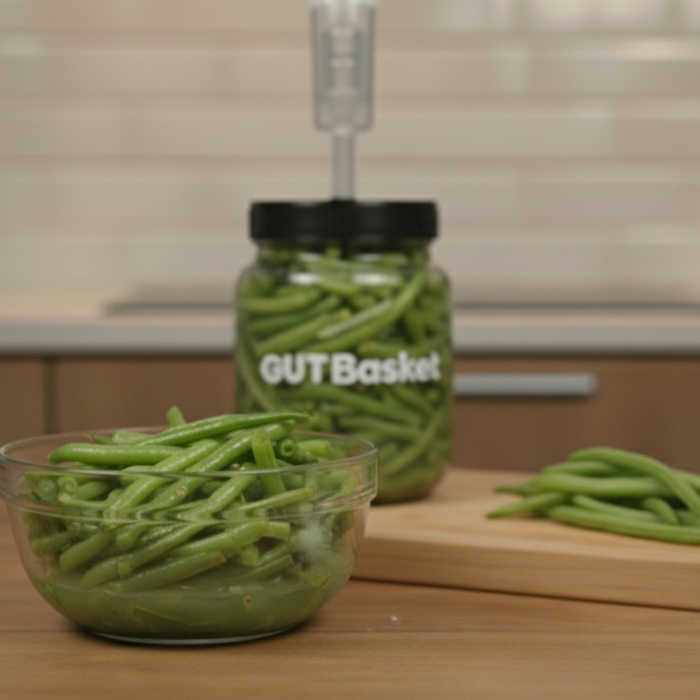 Fermented green beans are crisp, tangy, and full of probiotic goodness. They retain their snap while developing a mild sourness and spice from the brine, making them a perfect addition to salads, rice bowls, or a savory snack straight from the jar. This easy recipe celebrates the natural freshness of beans while enhancing them with live cultures. Ingredients (for a 1L Fermentation Jar) 300 g green beans, trimmed and cut into 3-inch pieces 20 g sea salt (1 tbsp) 450 ml filtered water (2¼ cups) 3 bay leaves 10 garlic cloves 1 dried red chili ½ tsp mustard seeds ½...