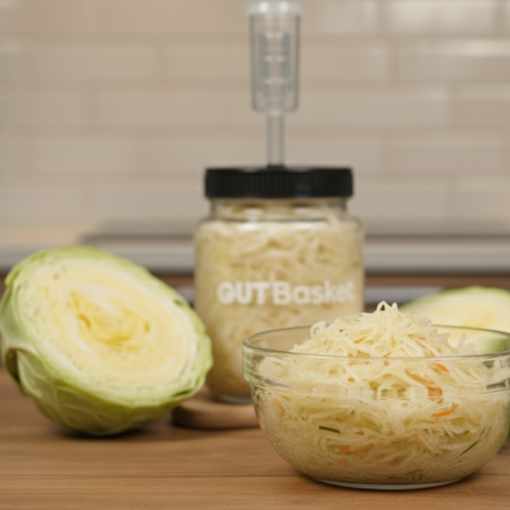 Sauerkraut is a timeless classic — a simple, probiotic-rich ferment made from cabbage and salt. Its crisp texture and tangy flavor make it a perfect side for hearty meals, sandwiches, or even eaten straight from the jar. Fermenting cabbage not only enhances its taste but also boosts its nutritional value with beneficial bacteria. Ingredients (for a 1L Fermentation Jar) 1 medium head of cabbage (approximately 800 g), thinly sliced (core discarded) 20 g sea salt (1 tbsp) 1 clean outer cabbage leaf (for covering) 1 tbsp fennel seeds or caraway seeds (optional) Step-by-Step Recipe Instructions Prepare the CabbageRemove any damaged...