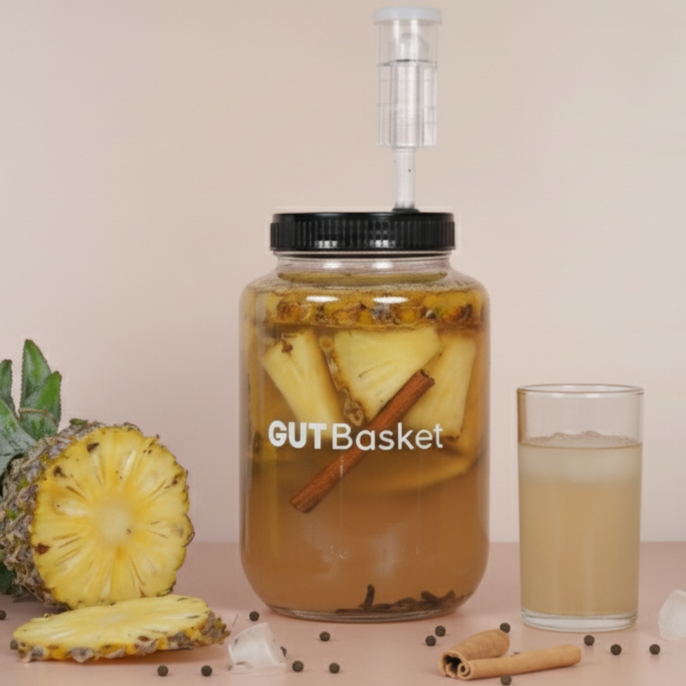 epache is a traditional Mexican fermented drink made from pineapple peels, jaggery (or brown sugar), and spices. Naturally probiotic and lightly fizzy, it supports gut health while delivering a sweet-tangy tropical flavor. Refreshing, energizing, and full of beneficial microbes — Tepache is summer in a jar, with a Gutbasket twist. Ingredients (for a 2L Fermentation Jar) Pineapple peel and core (washed) — from 1 whole pineapple 100 g jaggery or brown sugar 1 cinnamon stick 2 cloves 1 inch fresh ginger (sliced) 2 L filtered water Instructions Prepare the IngredientsWash the pineapple thoroughly before peeling. Keep the peel and core...