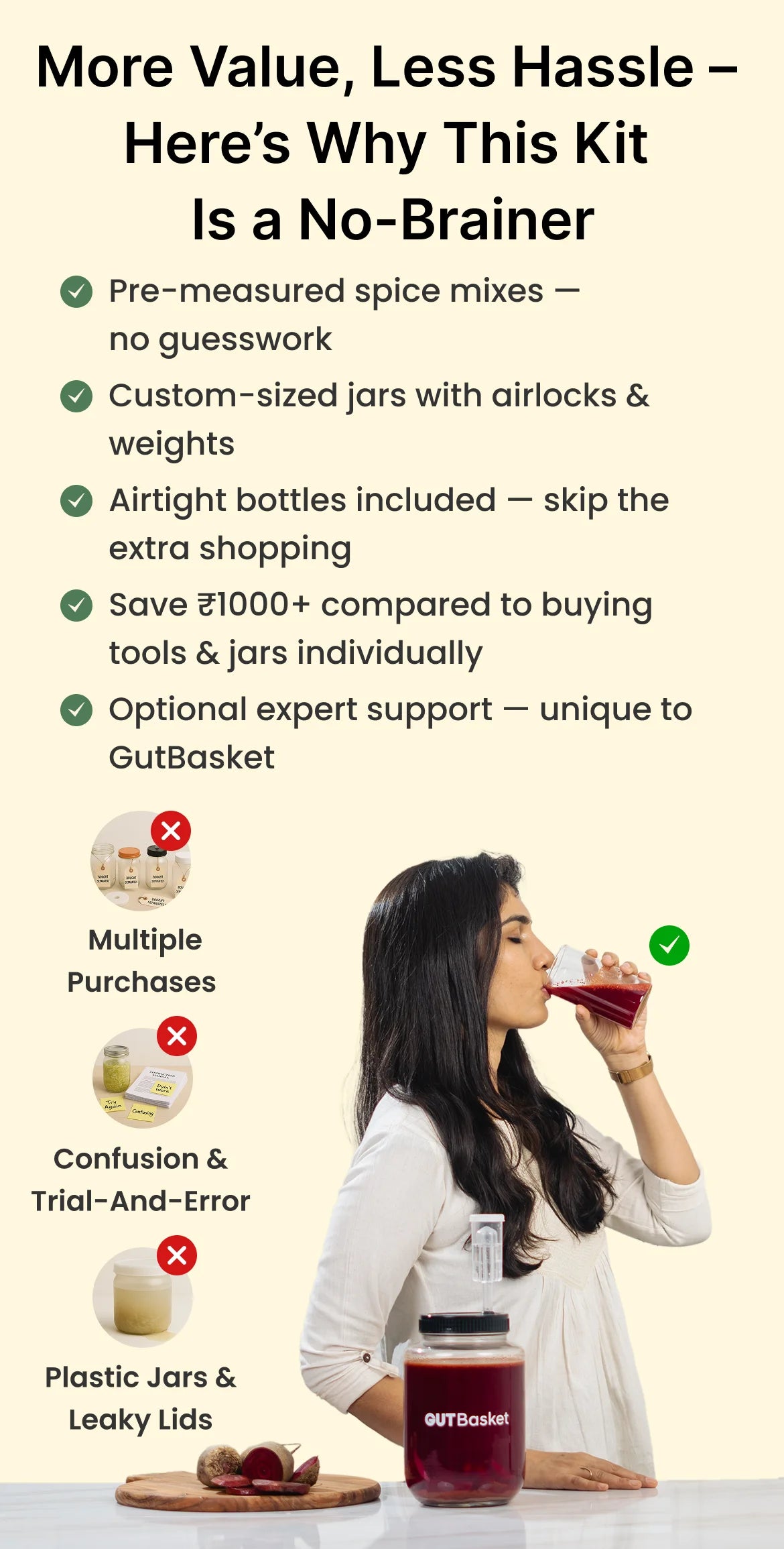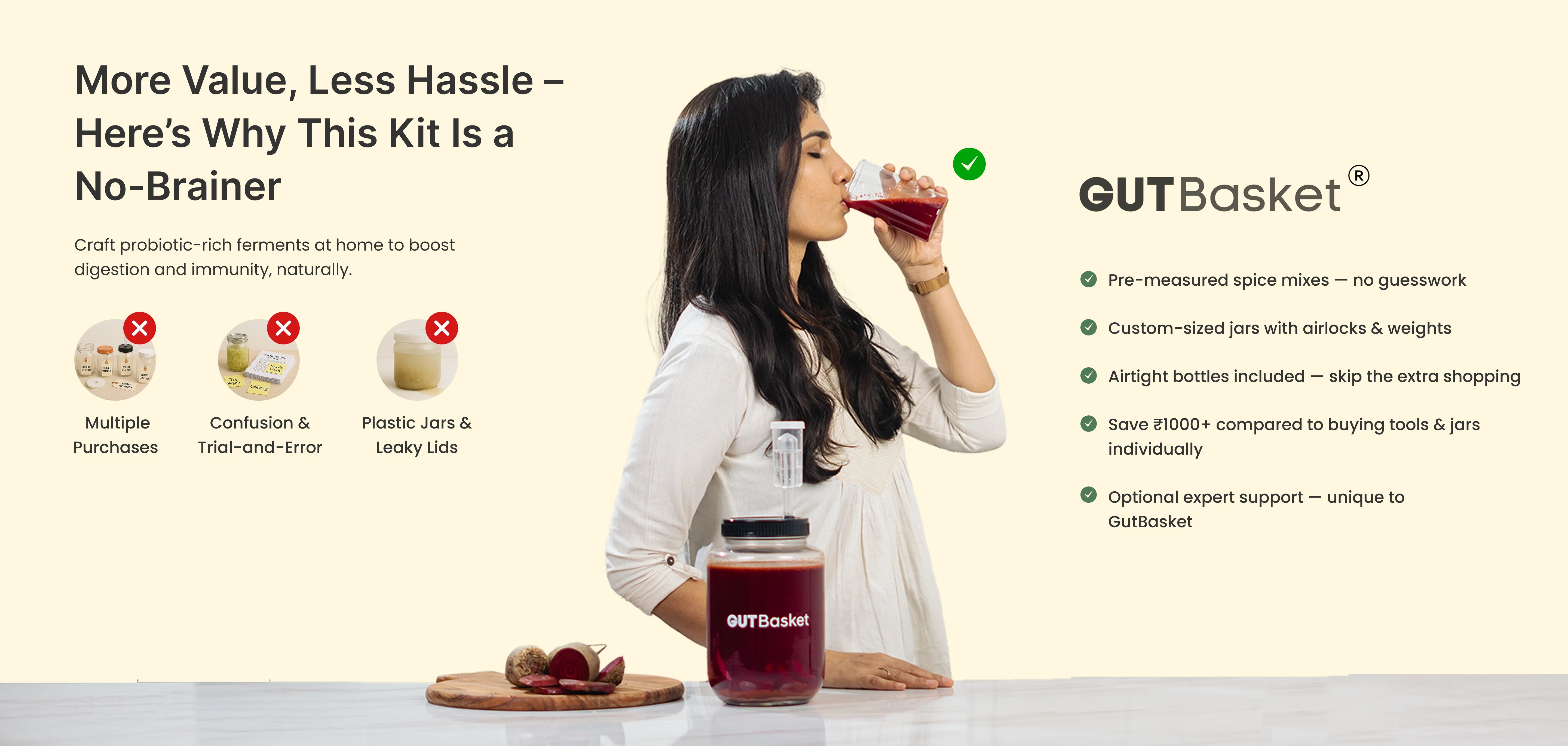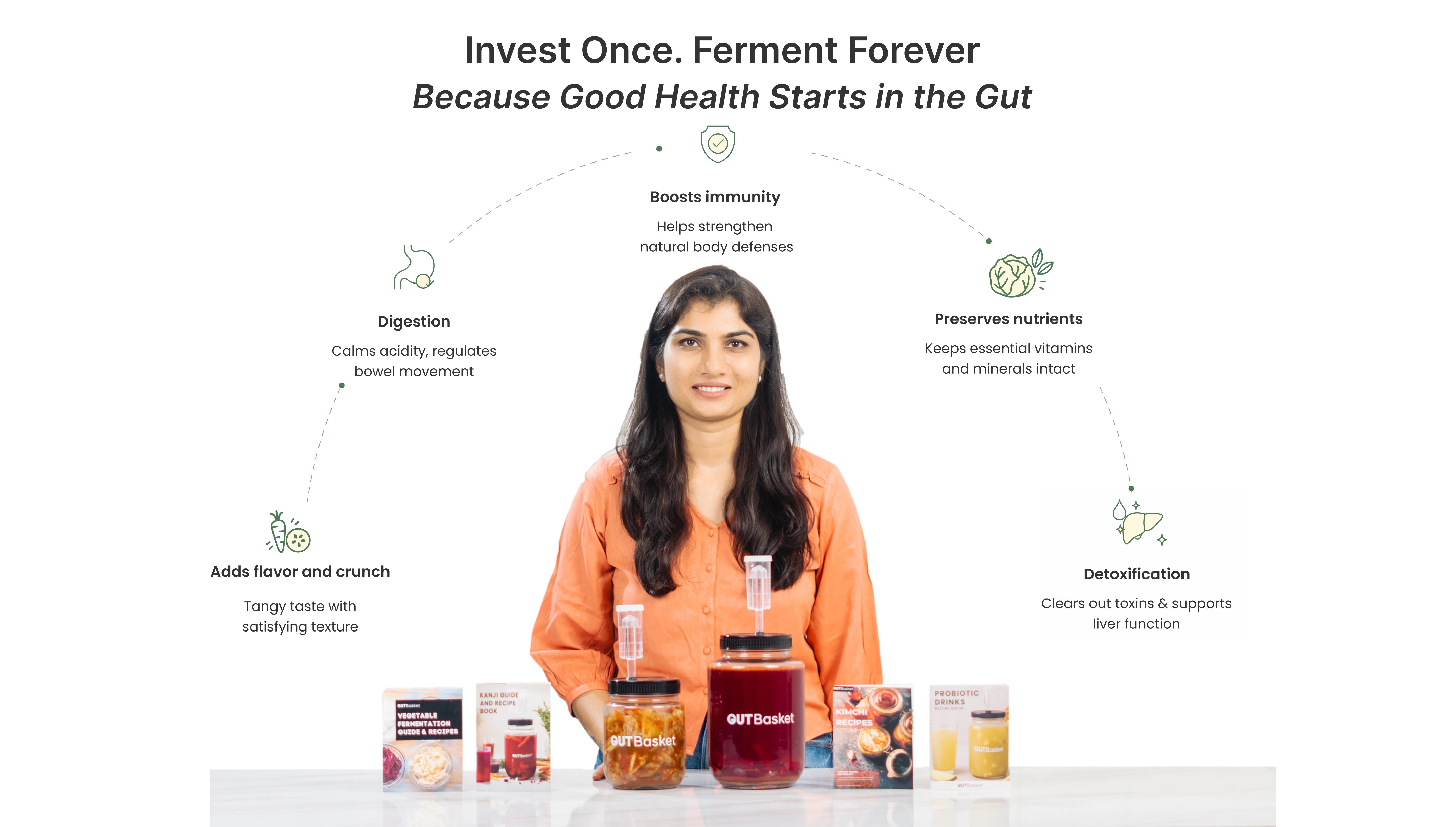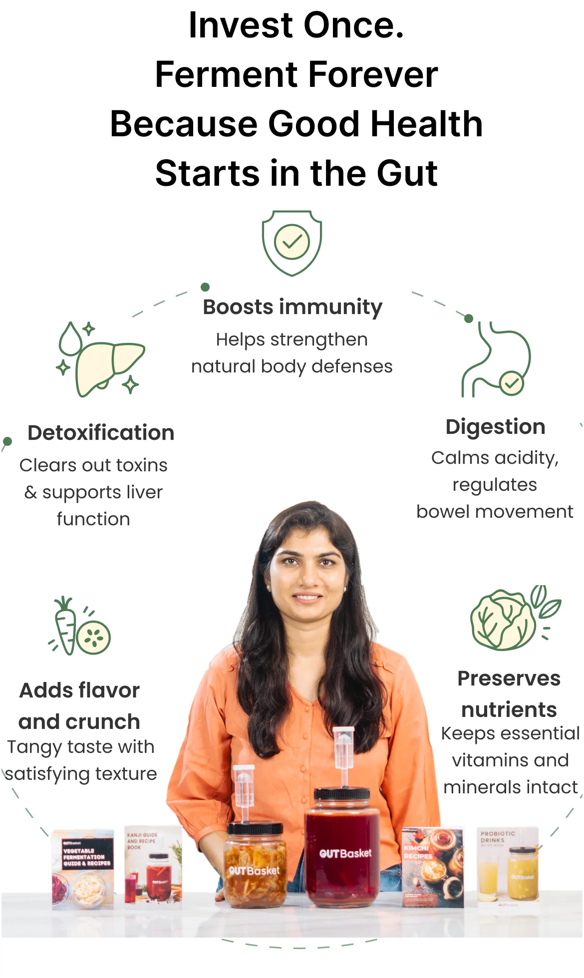 Master the art of fermentation with the GUTBasket Ultimate Fermentation Kit – a complete, premium-quality starter set designed for beginners and pros alike. From probiotic drinks to crunchy kimchi, this all-in-one bundle empowers you to create gut-friendly ferments right from your kitchen.