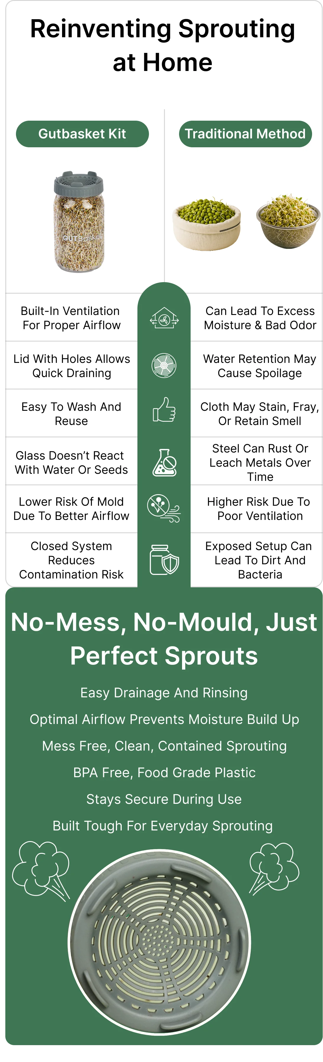 Grow fresh, enzyme-rich sprouts at home — easily and naturally. A simple, durable kit for daily nutrition and a plastic-free kitchen.